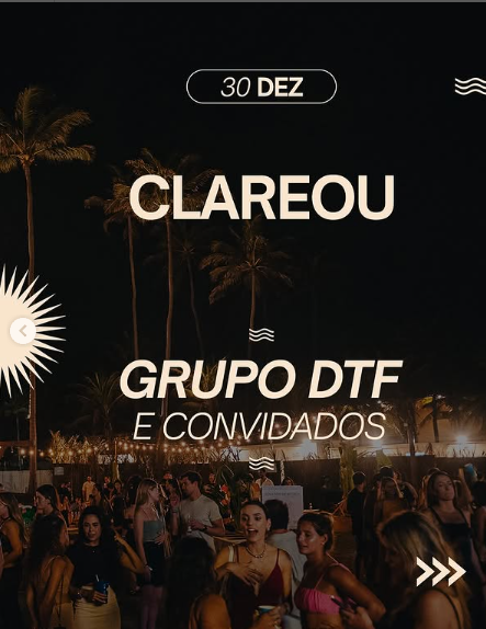 RÉVEILLON MARAVILHA 2026 27 a 31 de dezembro e 03 de janeiro FESTAS E ATRAÇÕES 27/12 WELCOME TO TAÍBA (open bar premium + experiência gastronômica dos povos originários) 3030 - DJ A - Luisa Viscardi - Ray Ferreira - Forró Taibana 28/12 SAMBA DO D2 (open bar premium) Marcelo D2 - Carol Emmerick - Chicco Aquino - Gotha 29/12 TÔNICA (open bar premium) Antdot - Riascode - Camila Jun - Chicco Aquino - Giovanna Zattar 30/12 CLAREOU (festa com bar vendido) Grupo DTF e Convidados 31/12 RÉVEILLON MARAVILHA (open bar premium) Coletivo Missa - DJ A - Pauly - RV - Ray Ferreira 03/01SUNSET DDP apenas ingresso AVULSO disponível (festa com bar vendido) DDP Diretoria