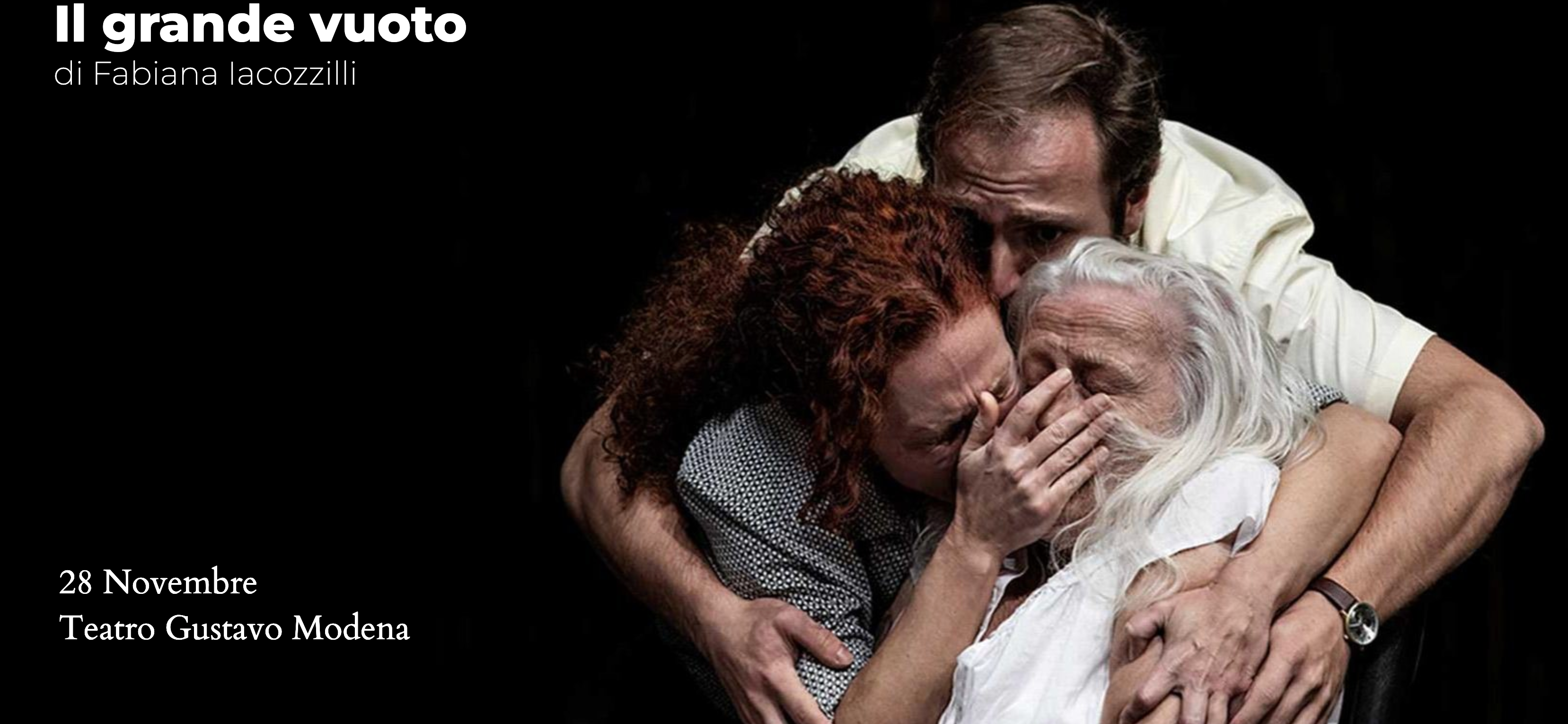 Ottimamente interpretato da Ermanno De Biagi, Francesca Farcomeni, Piero Lanzellotti, e dalla splendida Giusi Merli nel ruolo della madre (e con Mona Abokhatwa per la prima volta in scena), Il grande vuoto è uno straordinario spaccato di vita, umanissimo e commovente ritratto di famiglia alle prese con l’Alzheimer, evocato però con immaginifica creatività per svelare poeticamente tutto quel che ci rende umani.